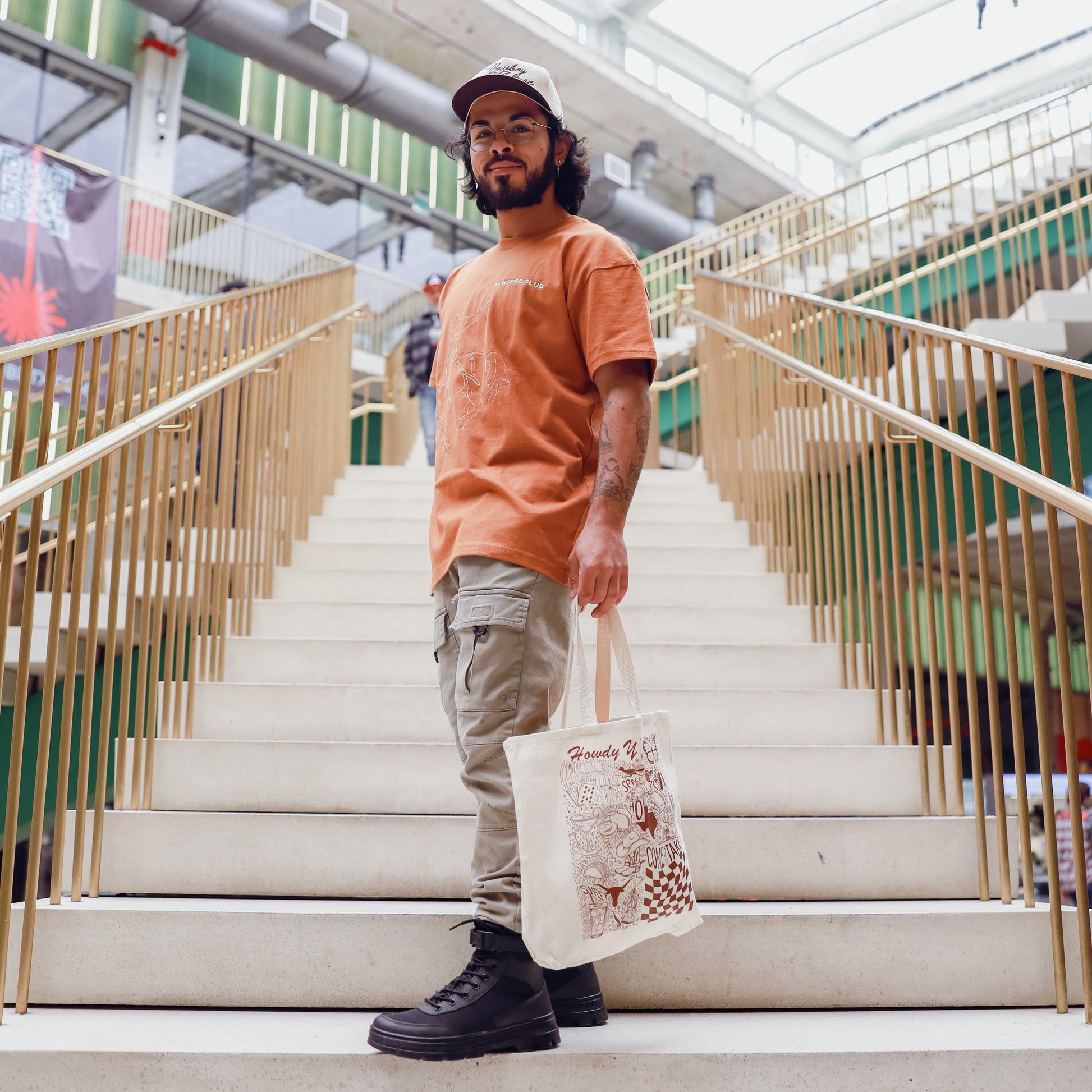 6.8 oz cotton tee, oversized fit with embroidered front design. Runs larger than most unisex tees.