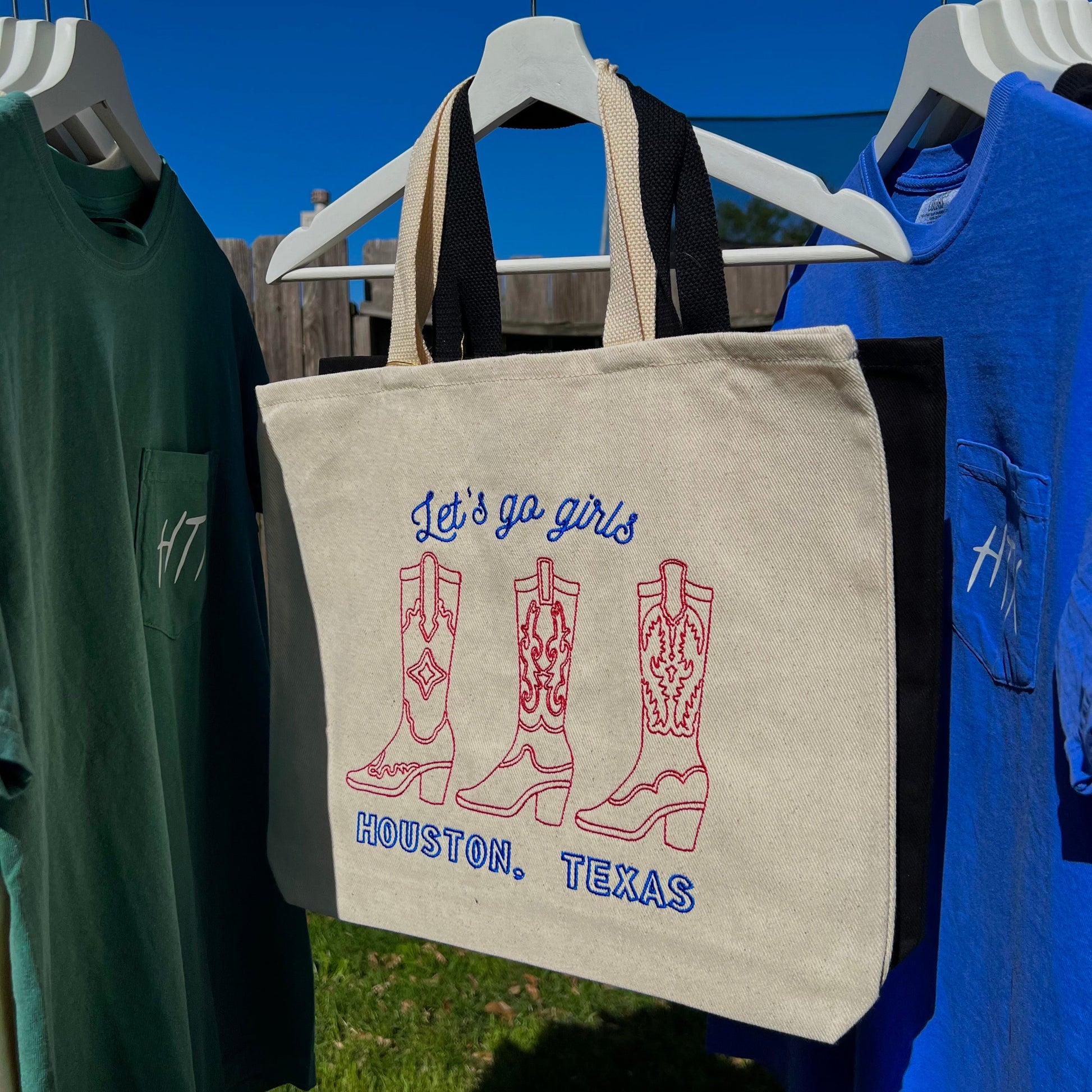 Embroidered canvas tote bags with three unique boot designs!